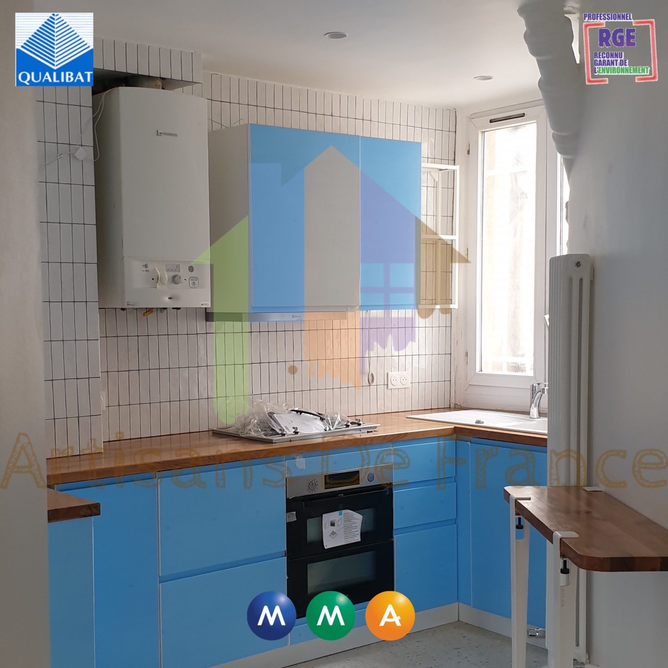 Les travaux ont inclus la mise aux normes de l'électricité, le remplacement de la chaudière à gaz et la rénovation des salles d'eau. De plus, la salle de bain a été entièrement transformée avec une élégante baignoire îlot, tandis que la cuisine a été modernisée avec des façades en bois et un plan de travail en quartz. Un rafraîchissement de peinture dans l'ensemble de l'appartement a complété cette rénovation de qualité.